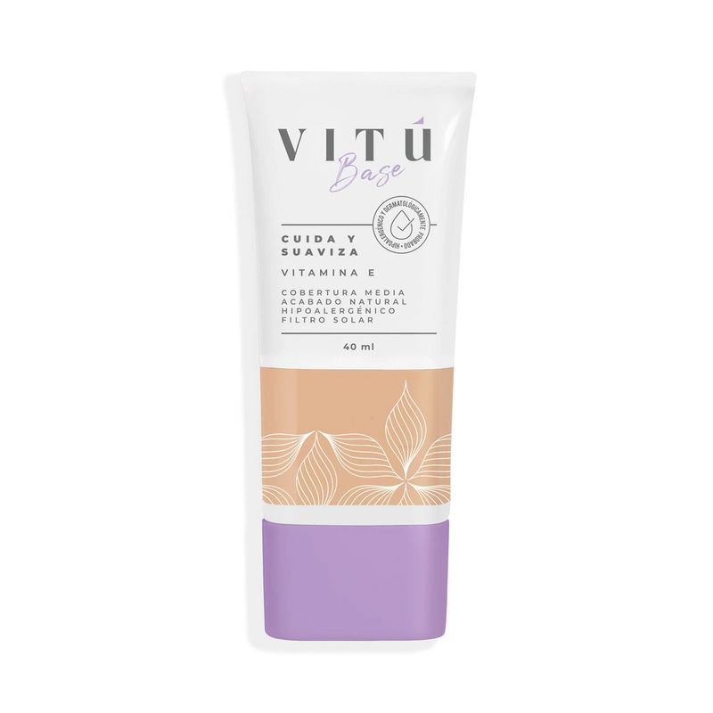 La base líquida con Vitamina E y Filtro Solar de Vitú, tiene una fórmula enriquecida con ingredientes naturales que cuidan y protegen la piel de las agresiones del medio ambiente. Su acabado natural deja la piel con un aspecto muy fresco; además, está clínica y dermatológicamente probada y puede ser usada en todo tipo de pieles. Viene en diferentes tonos que se adaptan a cada necesidad.